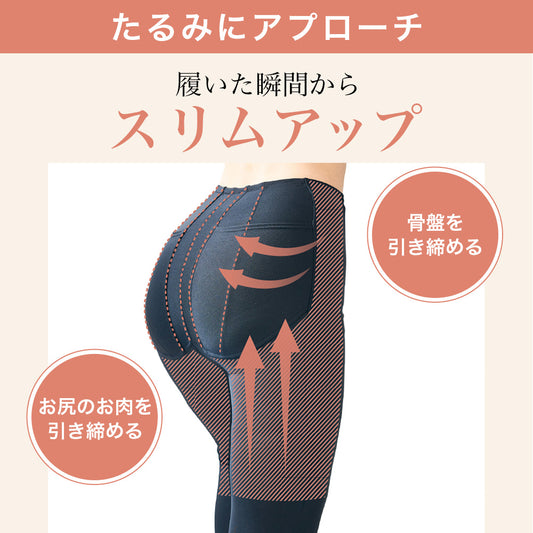 「たるみにアプローチ」履いた瞬間から スリムアップ 「歪みにアプローチ」腹圧と骨盤のW補正で 美姿勢サポート